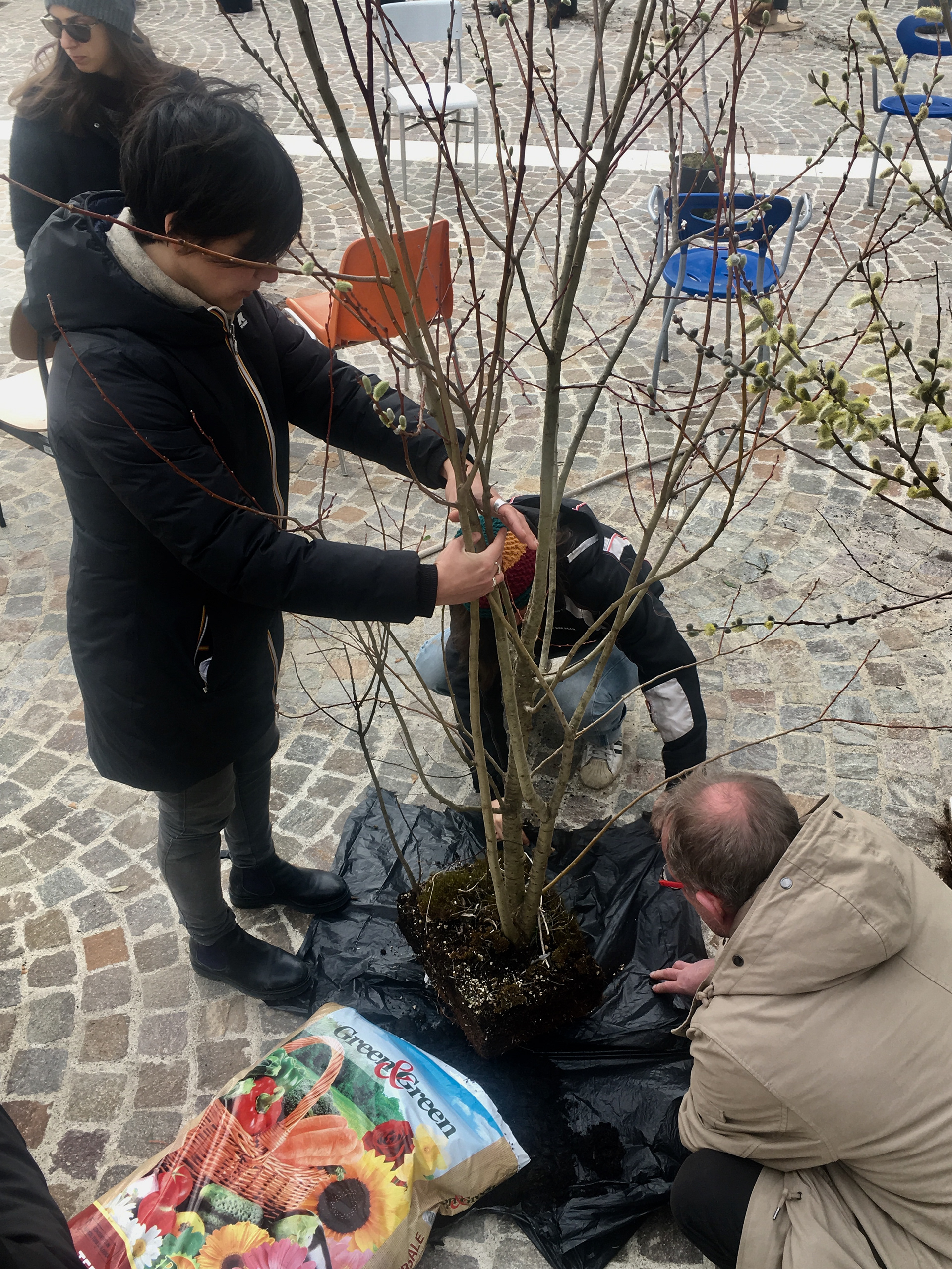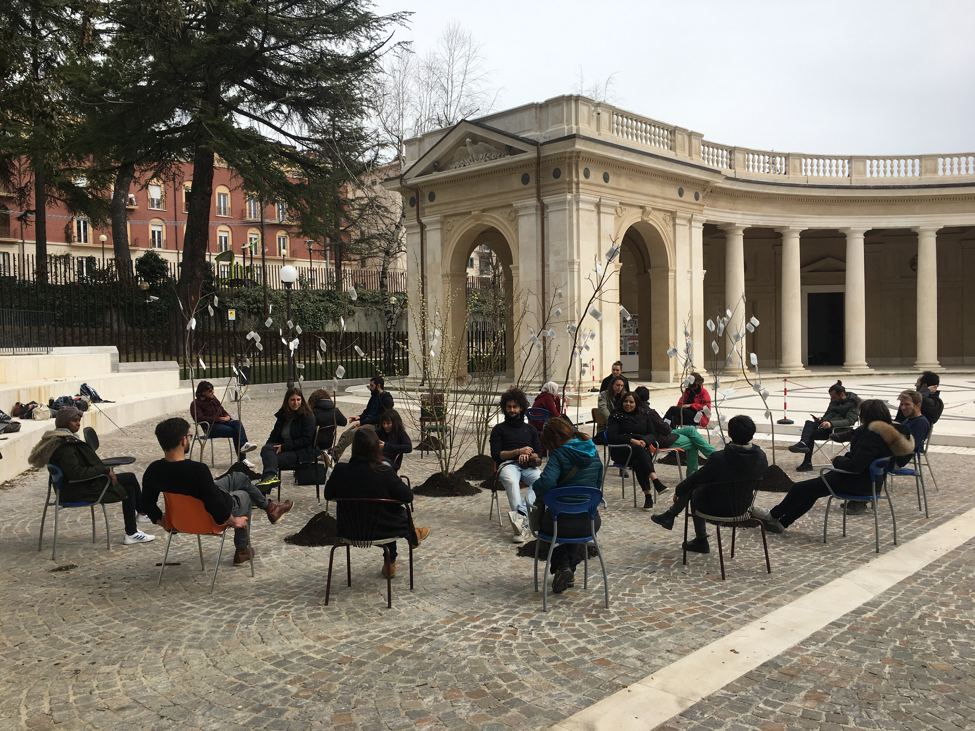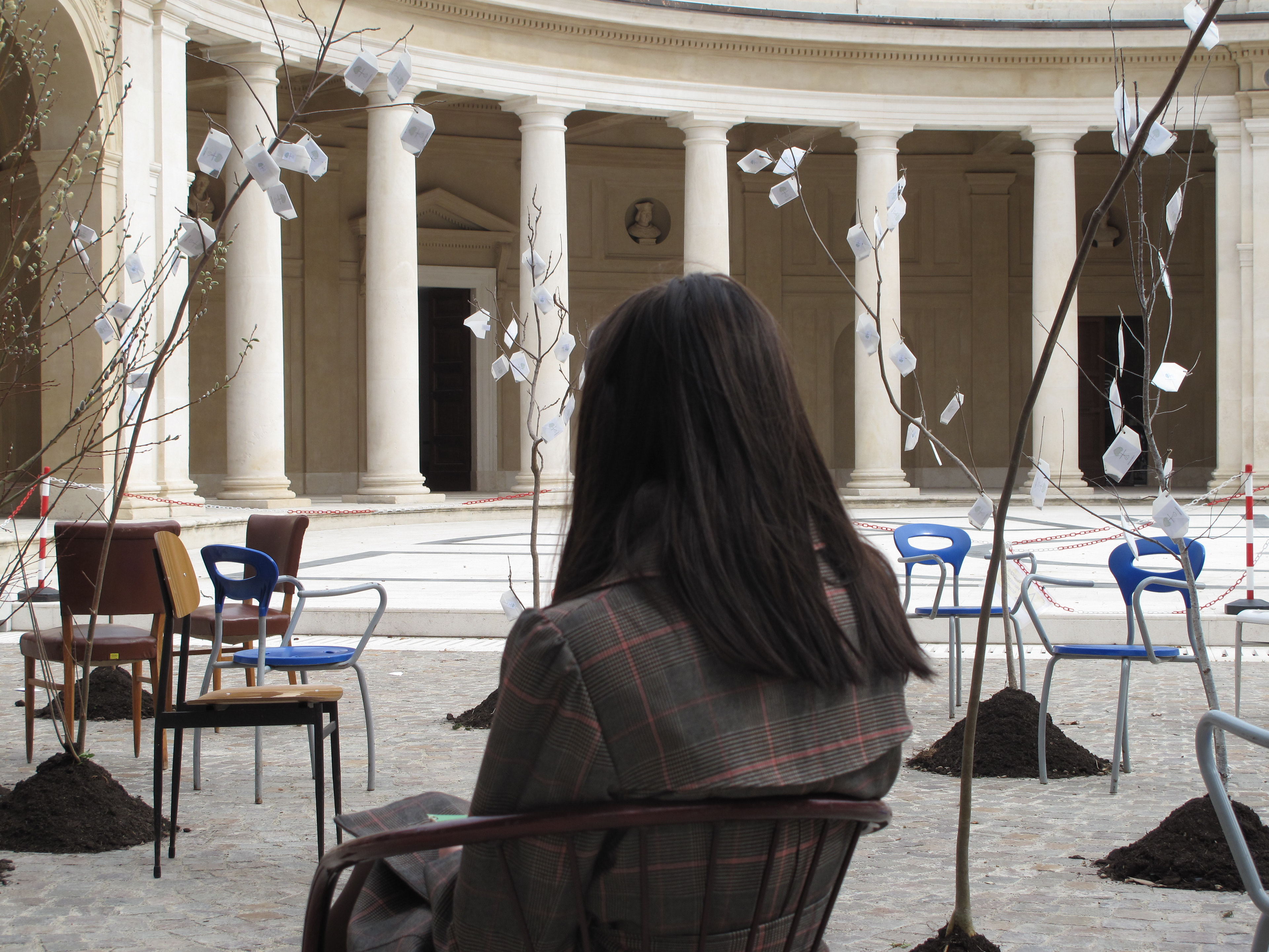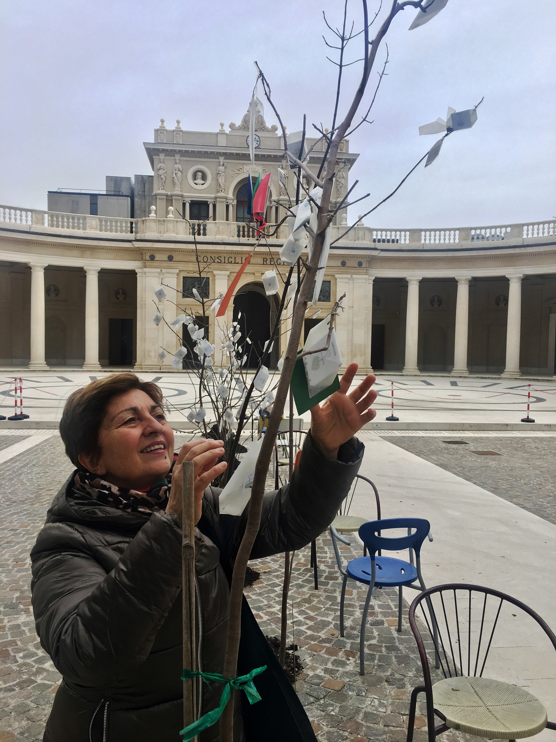 30 trees were installed in The Palace of the Hemicycle (seat of the Regional Council) to refer to historical, cultural and landscape roots, as well as the generalized desire for social roots. This space, made available by the regional institution, symbolically calls for the strengthening of dialogue with the community about the need to regain a sense of belonging.